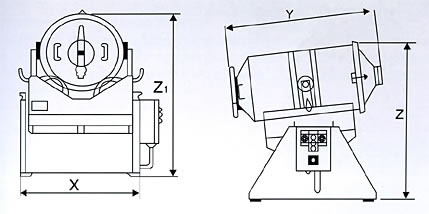 型号 料筒容积(L) 最大装料容积(L) 最大装料量(kg/批) 旋转、摇摆(r/min) 电机总功率(kw) 外形尺寸X*Y*H1(mm) Y1(mm) H2(mm) H3(mm) 总重量(kg) 料筒重量(kg)