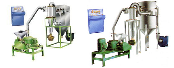 概述 该两种系列微粉碎机和超微粉碎机,由主机、辅机、电控三个部份组成,设计紧凑、结构合理、具有风选式,无筛无网。机内装有分级机构,能使粉碎,分级一次完成。负压输送使粉碎作业时机腔内产生的热量源源不断地排出,故也适应于热敏性物料的粉碎。本机适应范围广,生产过程连续进行,出料粒度可调;能处理如:化学制品、食品、化妆品、染料、树脂、壳物等多种物料的粉碎及分级。